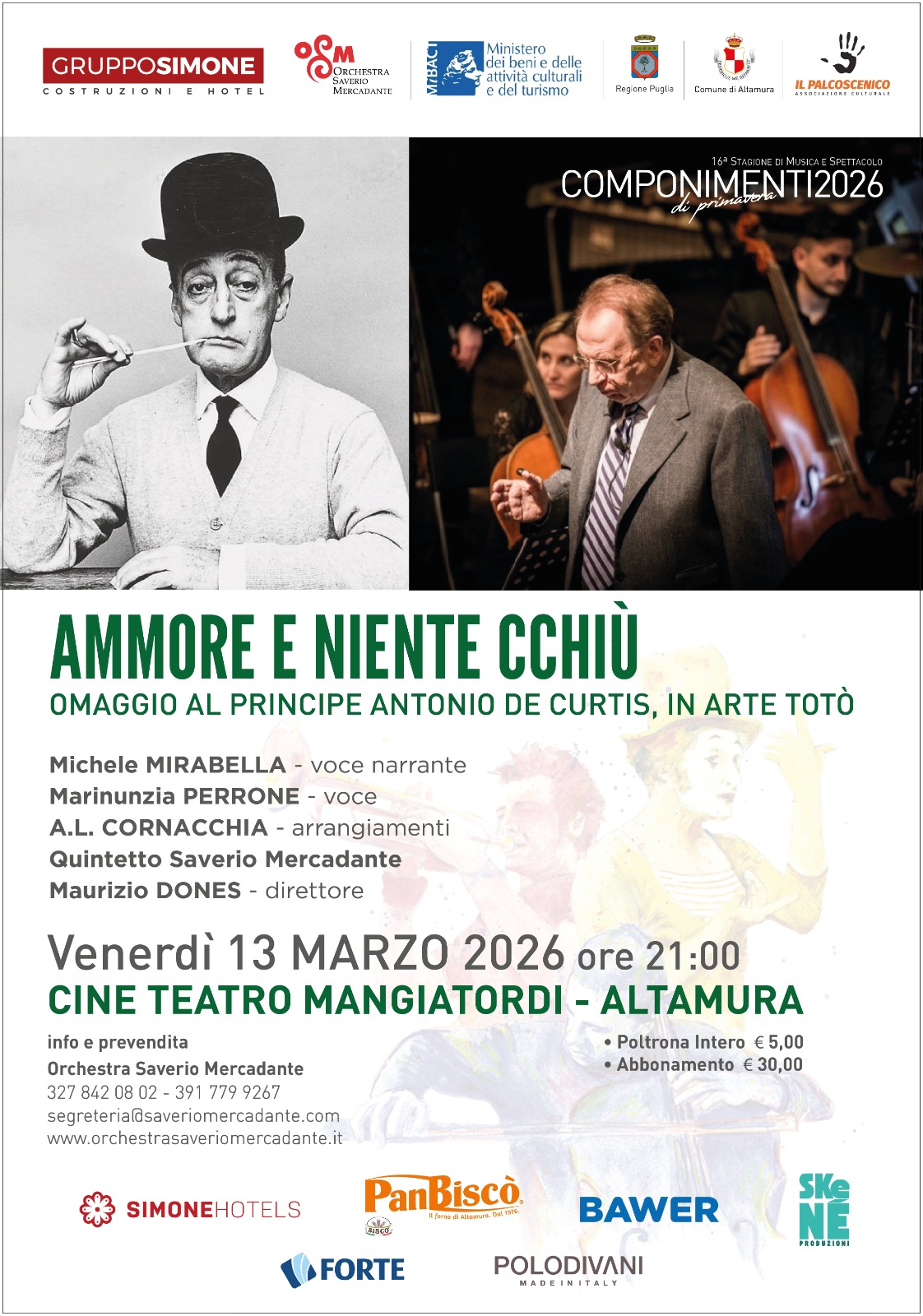 Un omaggio intenso e raffinato alla figura di Totò, attraverso parole e musica che ne raccontano l’anima più profonda: quella poetica, ironica e malinconica.