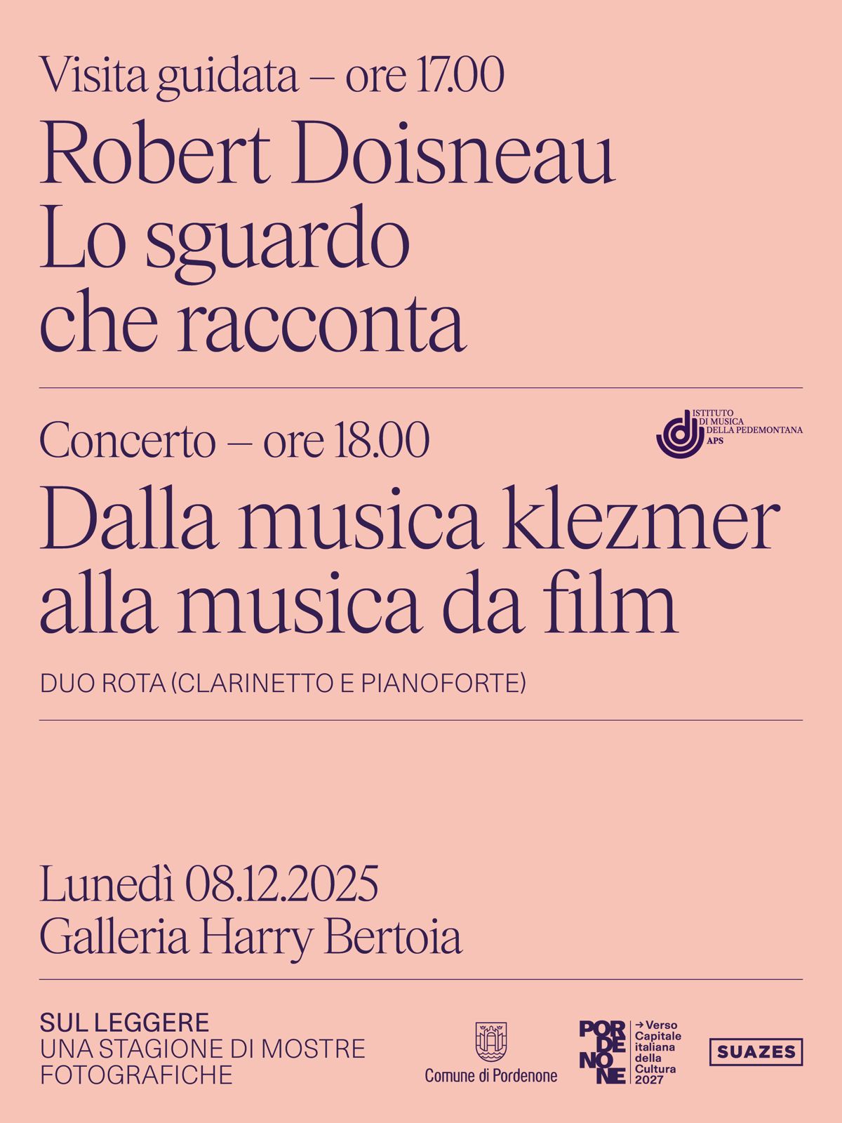 Potdenone Galleria Herru Bertoia Galleria Harry Bertoia, PordenoneIl Duo Rota, specializzato in musica klezmer, offre un’esplorazione originale e coinvolgente di questa tradizione musicale. Il repertorio spazia dalle melodie tradizionali a composizioni contemporanee, alternando brani vivaci ad altri più introspettivi, con richiami alle colonne sonore cinematografiche e al clima natalizio. Un’occasione unica per vivere l’arte e la musica in un dialogo ricco di emozioni e suggestioni.