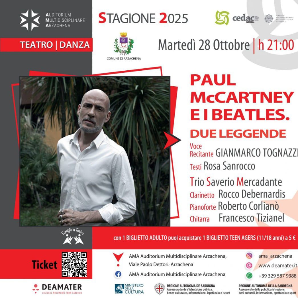 Sanluri Teatro comunale Akinu Conga, Sanluri, Italy28 ottobre – *Paul McCartney e i Beatles due leggende Adiacena