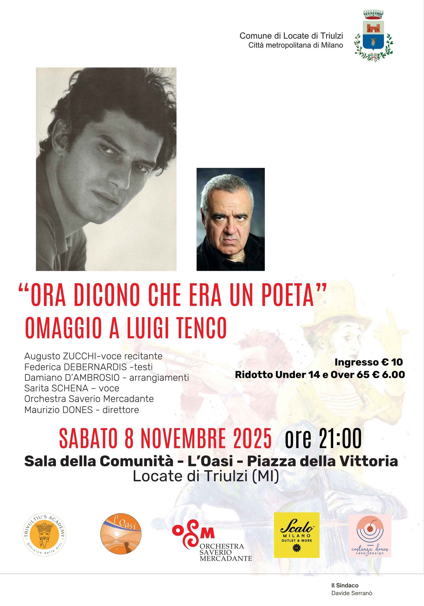 Ora dicono che era un poeta omaggio a Luigi Tenco sabato 8 novembre– ore 21 Sala della Comunità Oasi – Locate di Triulzi