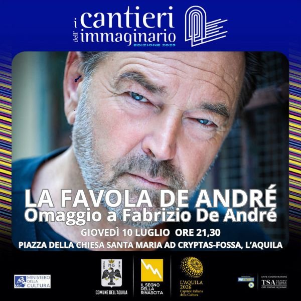 LA FAVOLA DE ANDRÉ – Omaggio a Fabrizio De André Giovedì 10 luglio 2025 – ore 21:30 Piazza della Chiesa Santa Maria ad Cryptas – Fossa (AQ)