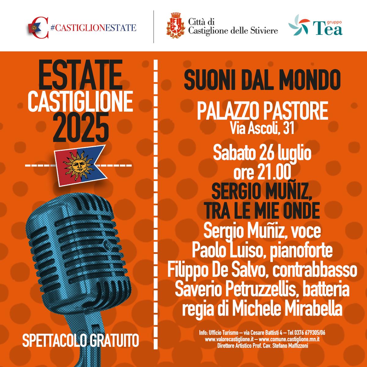 Estate Castiglione 2025 – Suoni dal Mondo “Tra le mie onde”– Sergio Múñiz Live Sabato 26 luglio Ore 21:00 Palazzo Pastore via Ascoli 31 – Castiglione