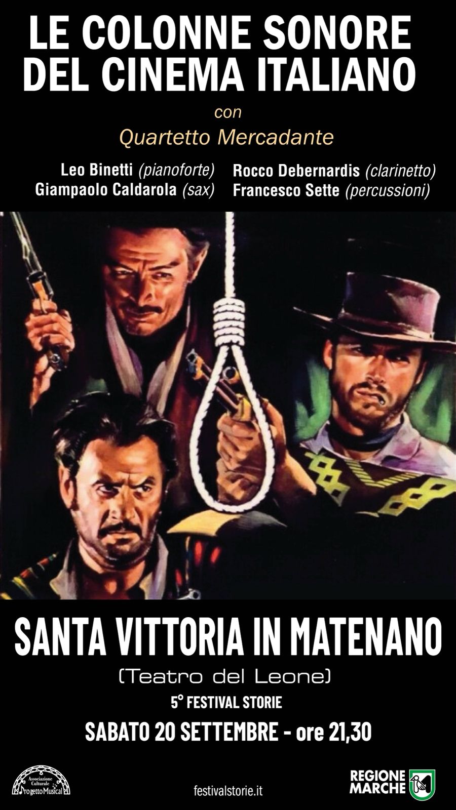 LE COLONNE SONORE DEL CINEMA con il QUARTETTO MERCADANTE-Sabato 20 Settembre – ore 21,30 SANTA VITTORIA IN MATENANO (Teatro del Leone)